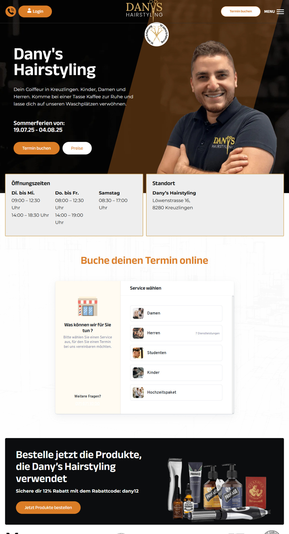 Dany's Hairstyling betreibt einen hochwertigen Coiffeur / Barber Salon in Kreuzlingen. Wir wurden beauftragt mit der Erneuerung der Webseite, um frischen Wind hineinzubringen. Die Vision: Online Terminbuchungen über die Webseite, möglichst einfach und unkompliziert. Zusätzlich soll die Sichtbarkeit, in der organischen Google Suche erhöht werden, sodass die Webseite auch regional gefunden wird.
